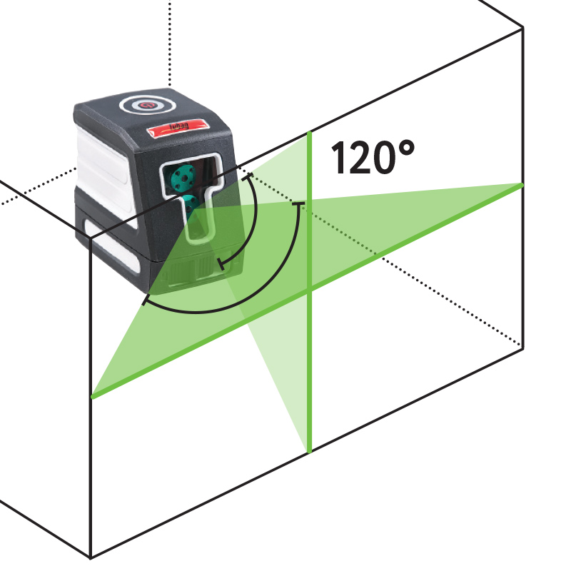 • самый компактный нивелир с зеленым лучом, яркость выше в 4 раза• построение вертикальной и горизонтальной линий с углом развертки 120° каждая